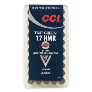 CCI Ammunition Varmint TNT Green Brass .17 HMR 16-Grain 50-Rounds HP